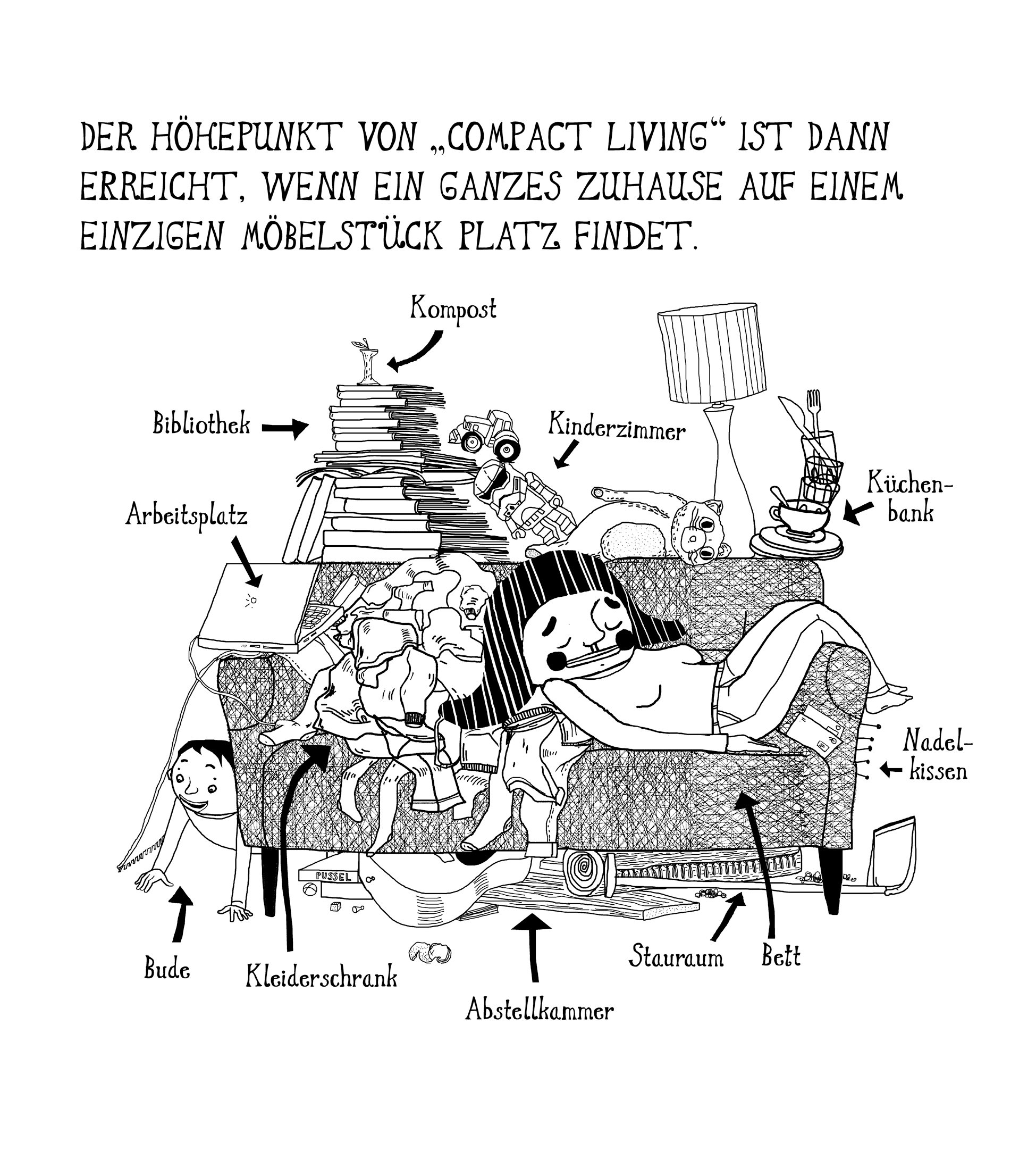 Lotta Sjöberg erzählt mit viel Humor und Sinn für die Alltäglichkeiten aus dem ganz normalen Familienleben. Illustriert hat sie das Buch mit herrlichen Zeichnungen, welche die Erzählung stützen und mit viel Liebe zum Detail weiterentwickeln, mit neuen Facetten würzen. Entstanden ist ein witziges, unterhaltsames und ehrliches Buch. Family Living ist ein Buch, das mit Illusionen aufräumt, einem zeigt: Man ist nicht allein in diesem Wahnsinn, andern geht es genauso.