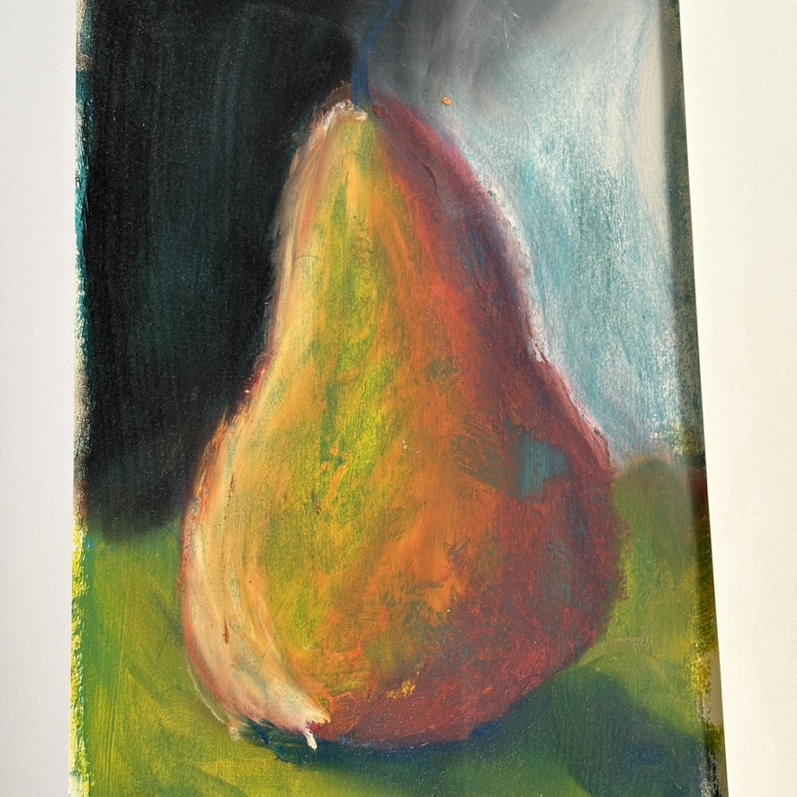 Ich bin jüngst in die Welt der Stillleben eingetaucht, am Anfang stand die Birne. Ich habe sie in diversen Varianten gemalt und gezeichnet und immer wieder kam ein neues Bild einer Birne heraus. Ist alles die gleiche Birne? Sind es verschiedene Birnen? Sind es Birnen, wie ich sie sehe?